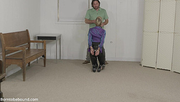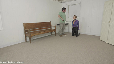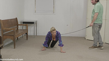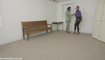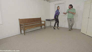 Its JJ’s birthday although she is exhausted she has plans with girl friends. She never goes out and she was looking forward to it, but her man friend comes over unannounced. He has different plans for her despite her whiny protests. She begs him to join her and her mature friends who will all be dressed like her, but he wants to stay in. He cuffs her, he spanks her over her tight patent pants as she rolls her eyes. He gets her collared and leashed and says it is time to go for a walk in her 6” patent pumps while stopping on occasion to feel her up and examine her. Then he has her get to her knees on the floor while cuffed to follow him around, before removing the handcuffs and having her crawl on all fours. This goes on for a while before he ties her elbows and a rope to her collar attaching her to the ceiling, more crawling, more groping and then she appears in a white long line bra and long leg panty girdle with silky stockings. He puts a wide belt around her neck and while manhandling her and making her move around. He spanks her a bit over his knee and then he leaves her hogcuffed and ballgagged on the floor with a key and takes off on her. She has to free herself on her own. Did she make it to her own birthday dinner?